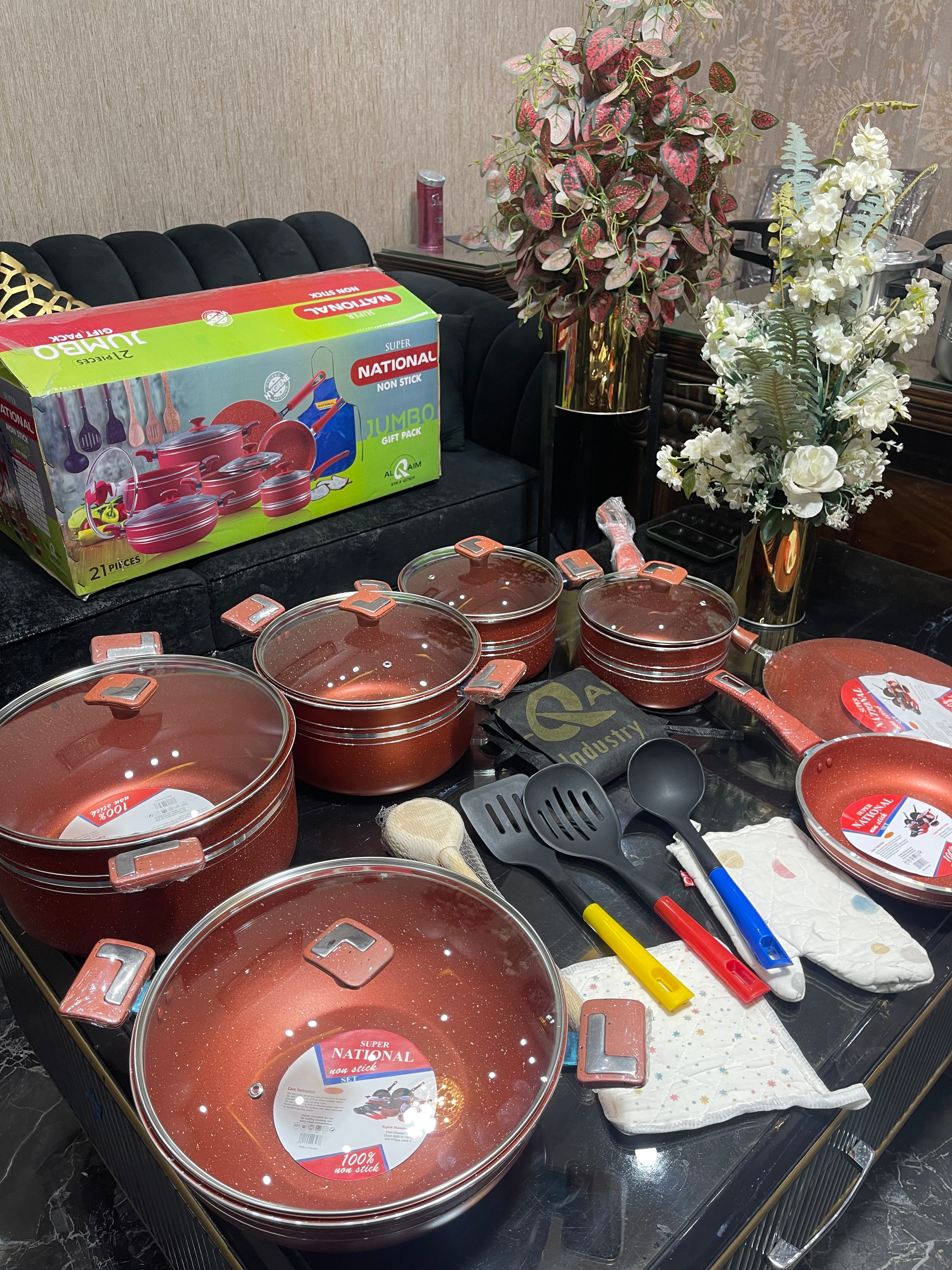 It Has 3 Casseroles with glass lids. Big Size